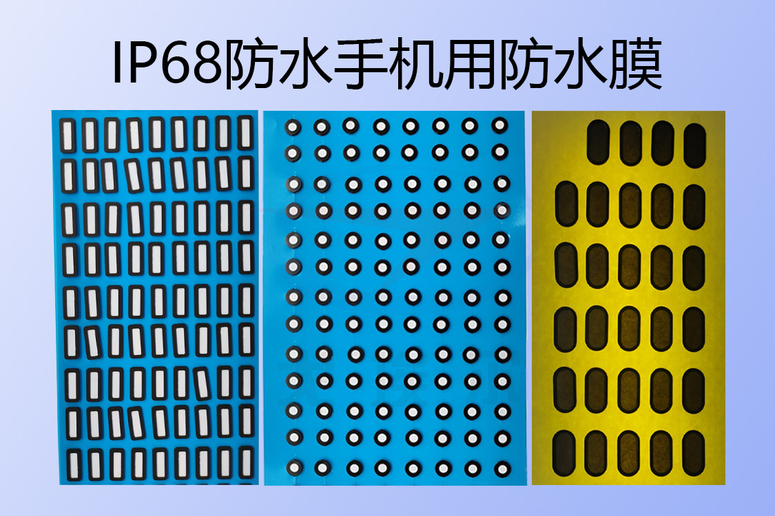 IP68防塵防水級別的智能手機防水的措施是防水密封膠、硅膠密封墊、防水膜(防水透聲膜或防水透氣膜)、防水納米涂層這四種材料的幾種相互配合來實現的。結構防水指的是屏幕與殼體,中框與后蓋處的防水,一般呢是通過防水密封膠來密封這些縫隙;對于按鍵處采用硅膠密封墊與防水密封膠配合實現防水,這樣防水性能就有了一個保證,然后就是手機殼體上的聽筒、揚聲器、MIC麥克等這些透聲孔的地方一般設有防水膜(防水透聲膜與防水透氣膜)。這樣就可以對有防水膜(手機防水透聲膜或者說手機防水透氣膜)的聽筒、喇叭、揚聲器、MIC等聲學部件可達IP68級防護,可完全浸在水中。這就是進一步實現了防水,對于手機主板的防水一般是通過納米防水涂層來實現的,這些相互配合就可以更好地實現手機IP68防水性能。