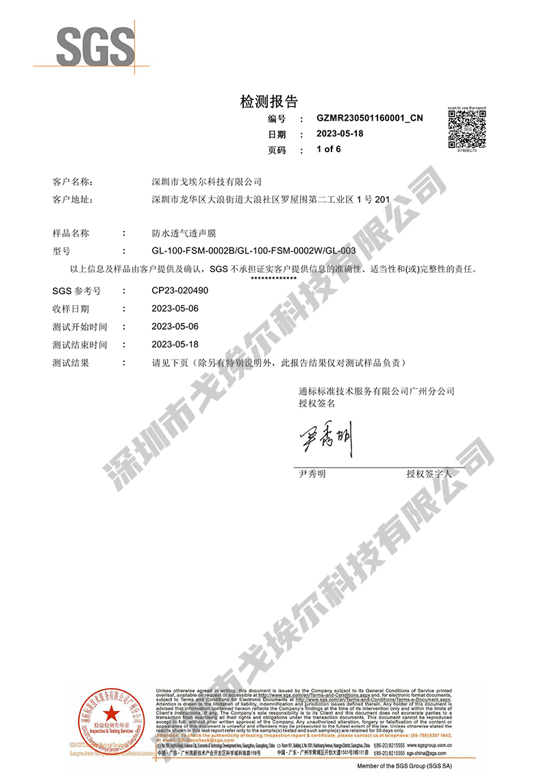 防水透氣透聲膜檢測(cè)報(bào)告3